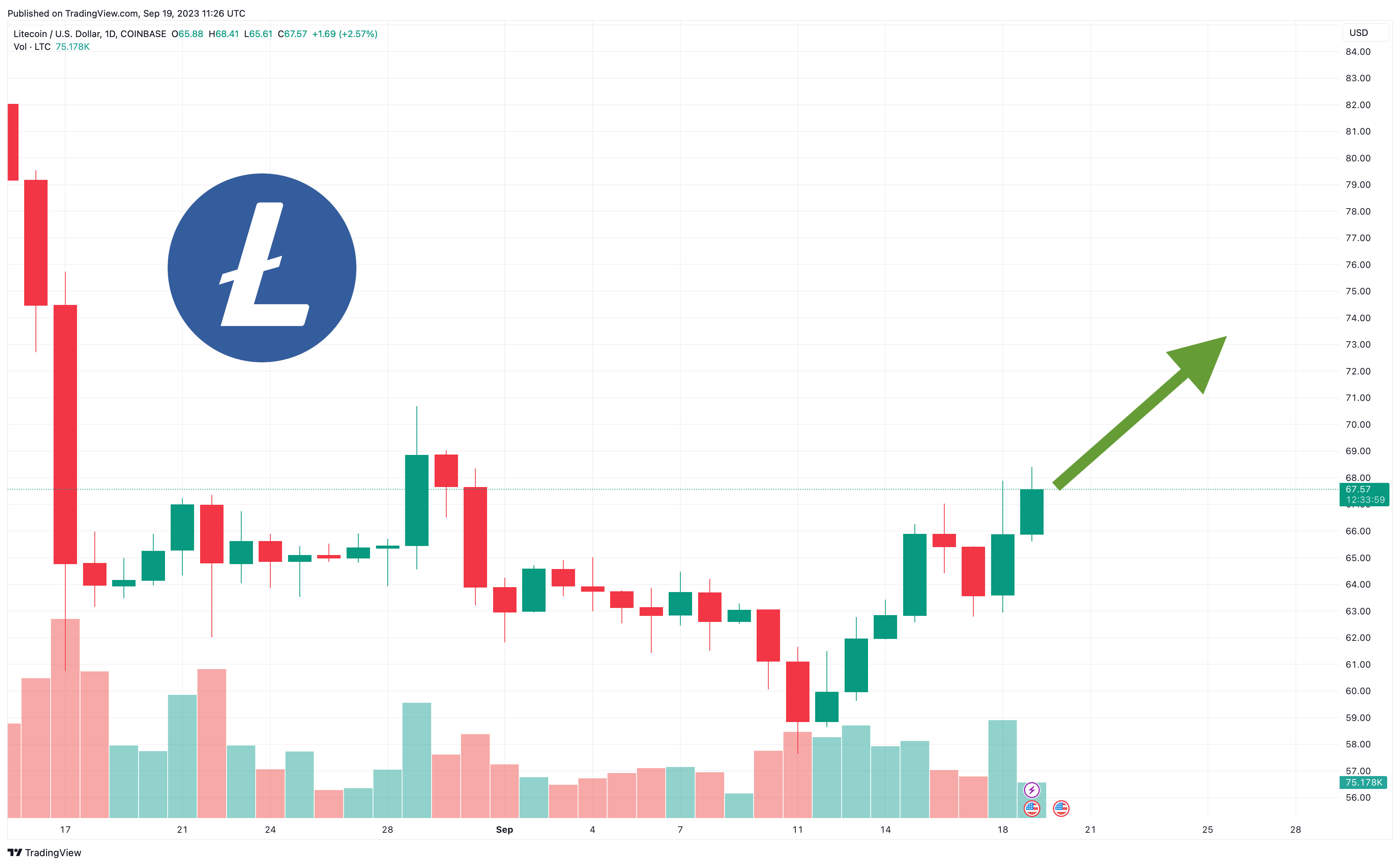 The price of Litecoin (LTC) has increased by 2.5% in the past 24 hours, rallying to $67.98 on a day when the cryptocurrency market as a whole has gained by a more modest 1%. LTC is now up by 13% in a week and by 5.5% in the past month, with the altcoin’s 24-hour trading volume rising […]